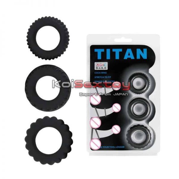 ห่วงสวม เซ็ต Titan มาพร้อมกันเป็นเซ็ต มี 3 ห่วง 3 สไตล์ ซื้อไปแล้วคู่นอนคุณจะไม่ผิดหวังทั้งช่วยในเรื่องของการชะลอการหลั่งได้ดีและยังทำให้คู่นอนเสียวได้อีก